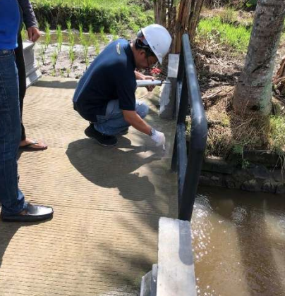 Concrete quality inspection by the Badung audit team for the Mengwi agricultural road project. Based on the test results, the concrete quality in this project meets the specifications in accordance with the design, namely K-250 kg/cm2.